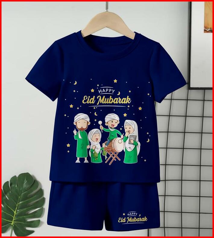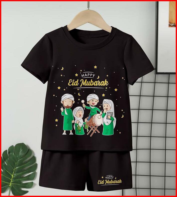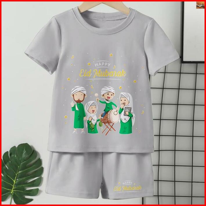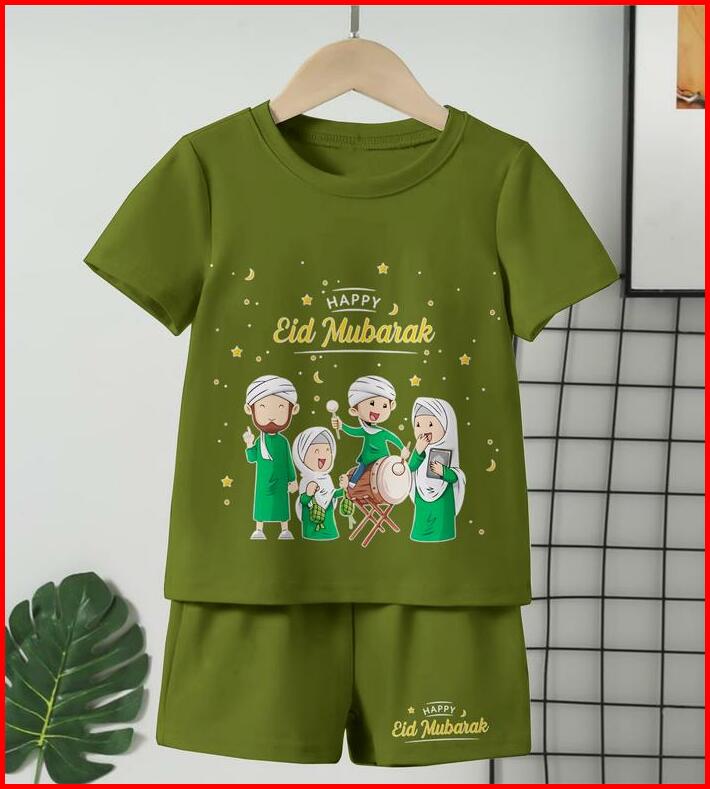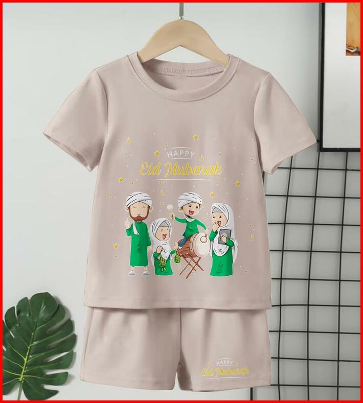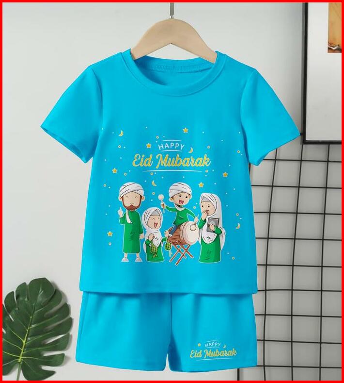 Luwi Kids Setelan Anak Tema Lebaran Idul Fitri Cewek Cowok Gambar Full Keluarga Muslim Celana Kaos Panjang Koko Baju