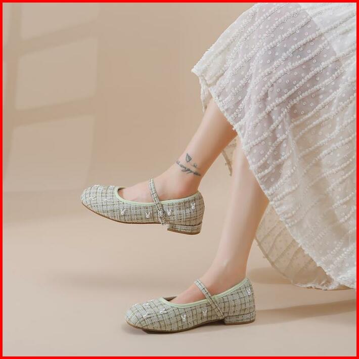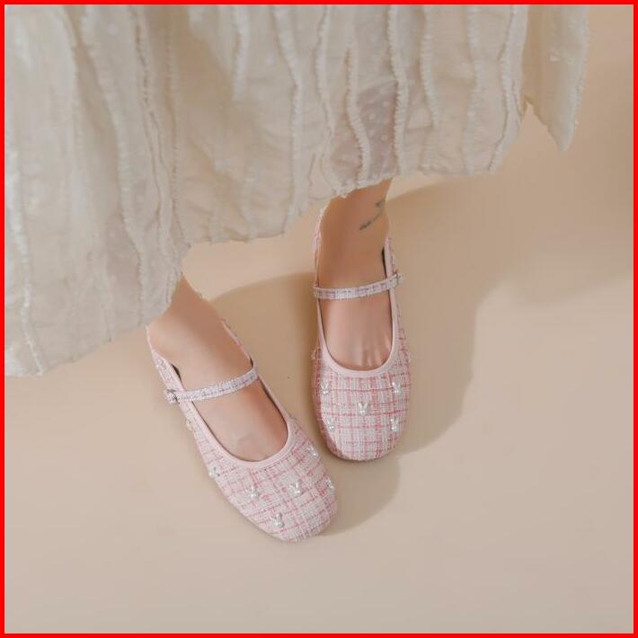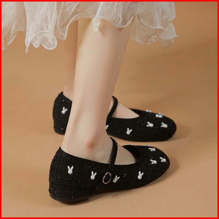 5423 Mayz Rabbit Flatshoes Tweed Sepatu Casual Bunny Wanita Korean Style Black Beige Green Pink