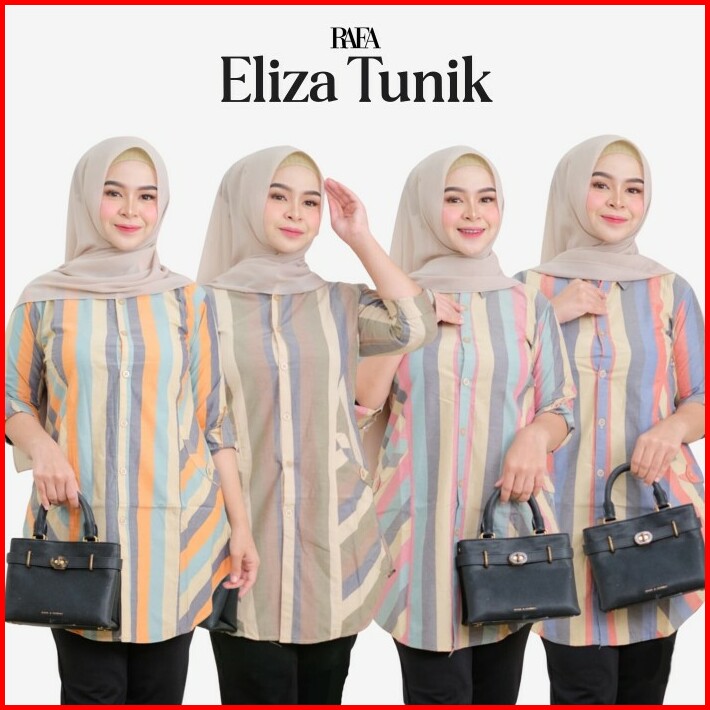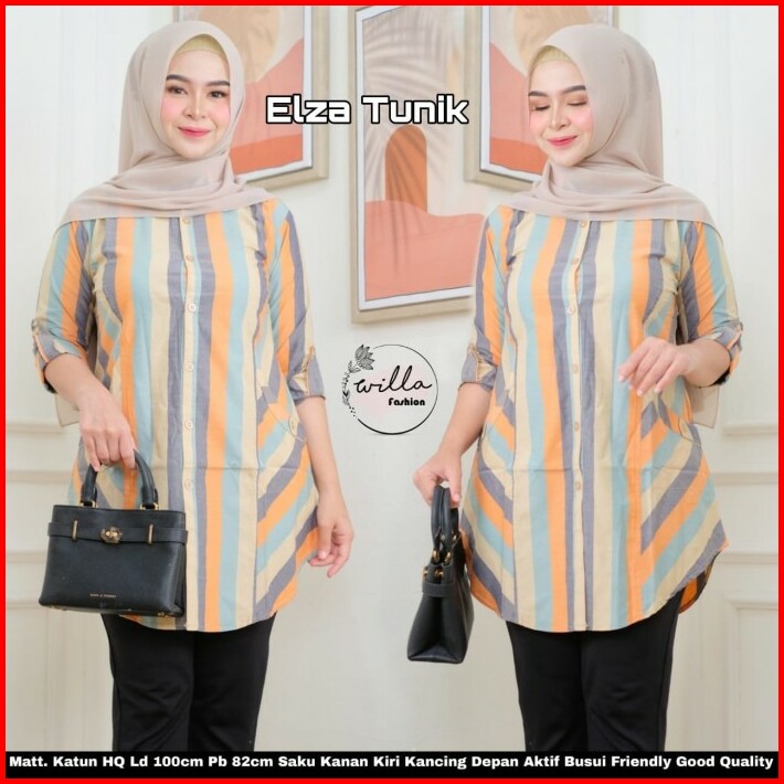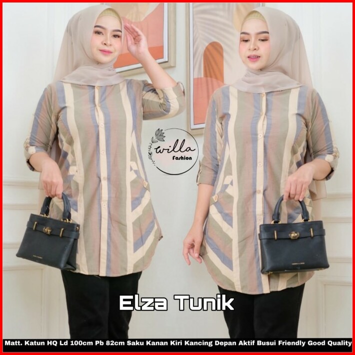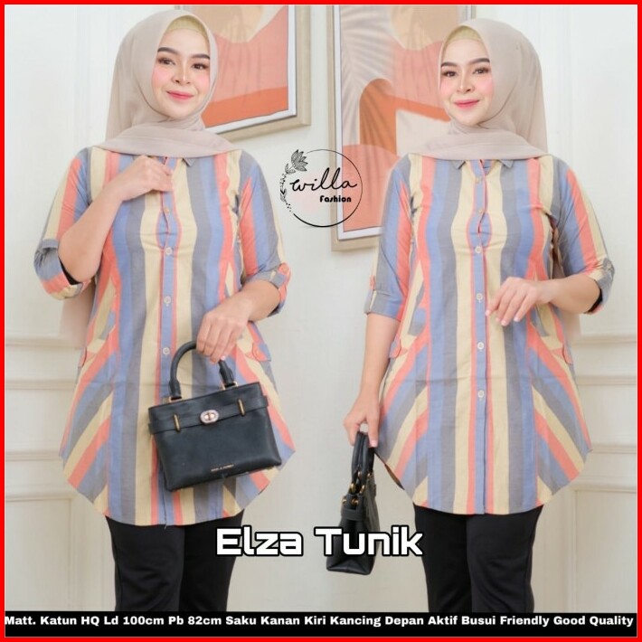 Atasan Kemeja Wanita Elza Tunik Bahan Katun Premium Motif Salur
