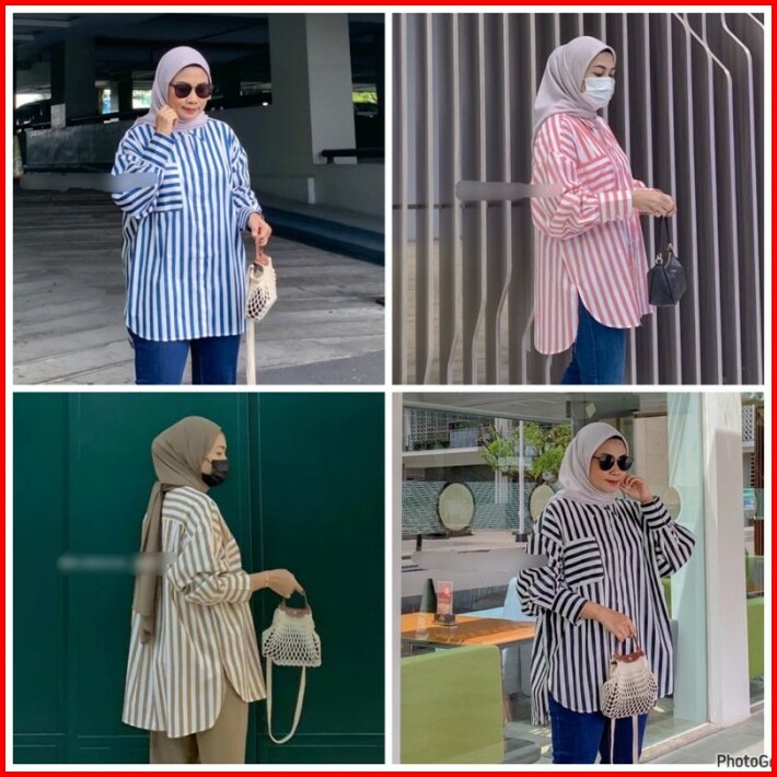 Kemeja Wanita Stripe Salur Tersedia Bigsize