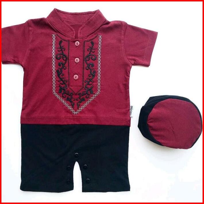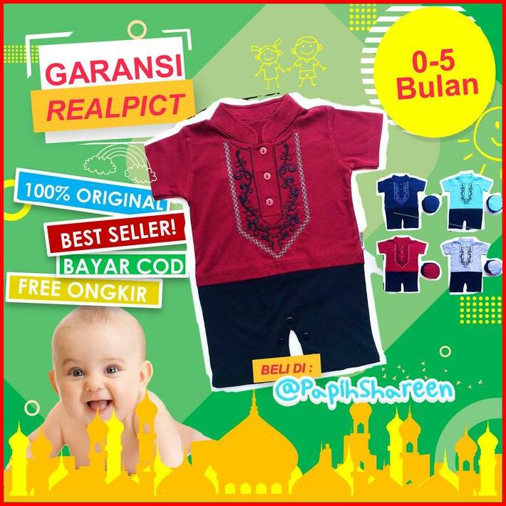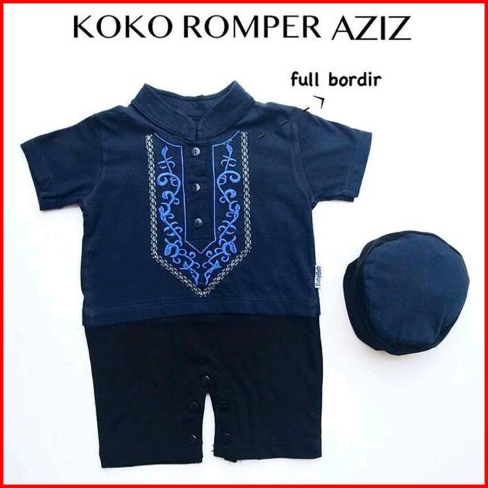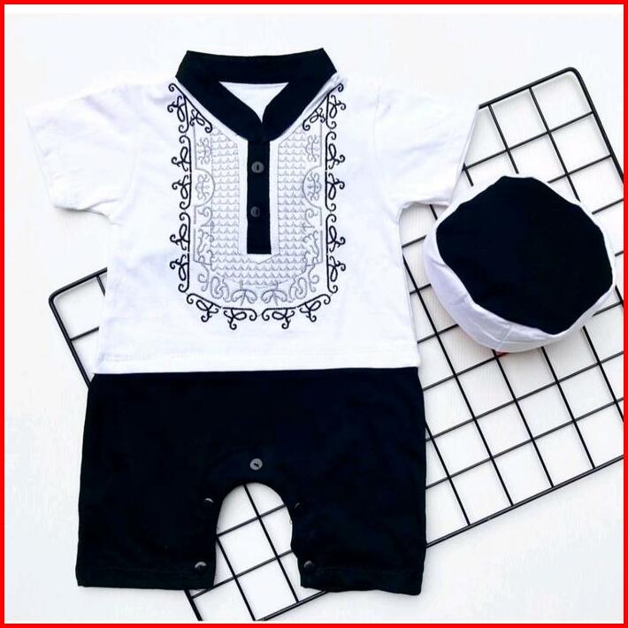 Baju Koko Bayi Lakilaki Cowok Newborn 0 6 12 Bulan Bahan Adem Bordir 3d Model Kekinian Jumper Motif Muslim Navy Peci Ana