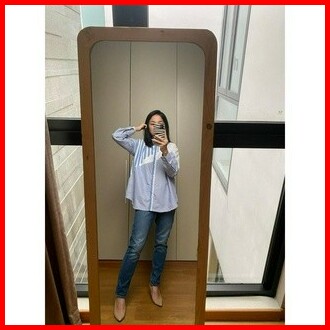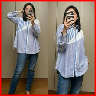 Sjm Kemeja Wanita Salur Diagonal Garis Fashion Wanita Bahan Katun Lengan Panjang Premium 3774