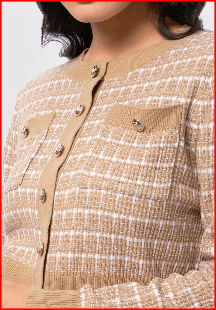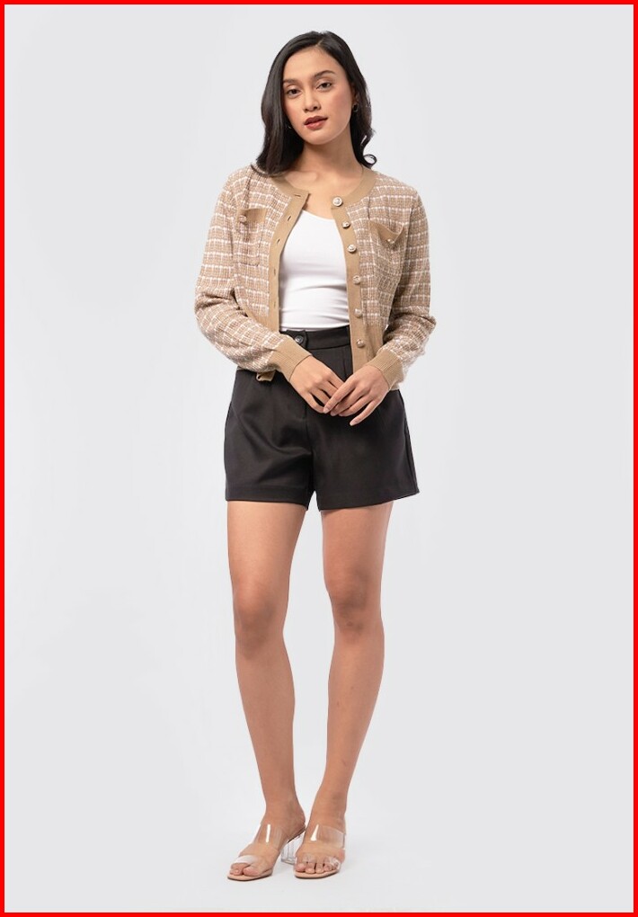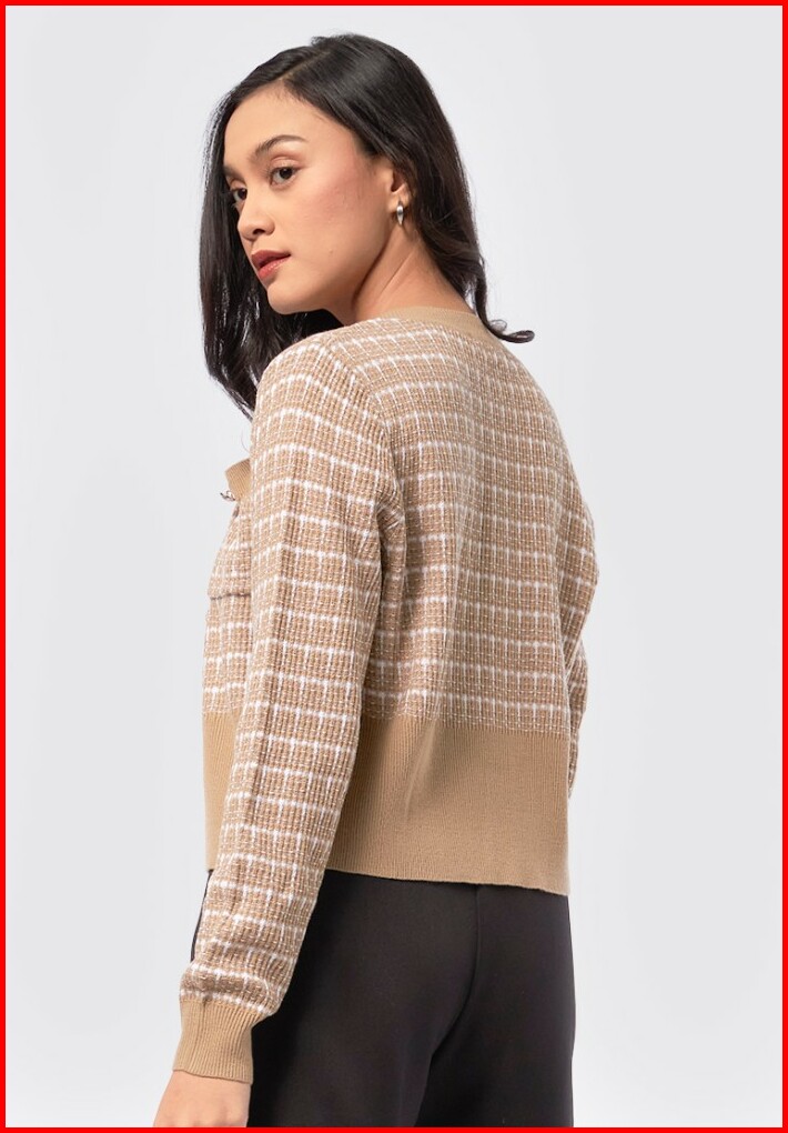 Executive Long Sleeve Knit Crop Cardigan 5-cogkca224i045 Tan