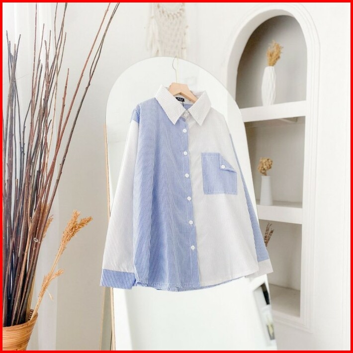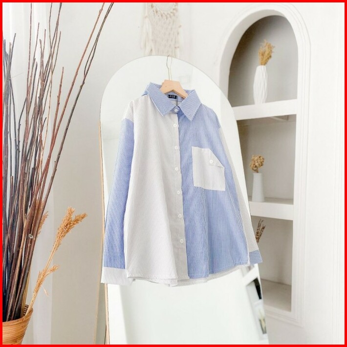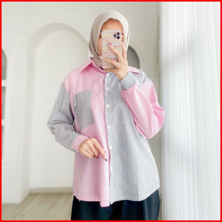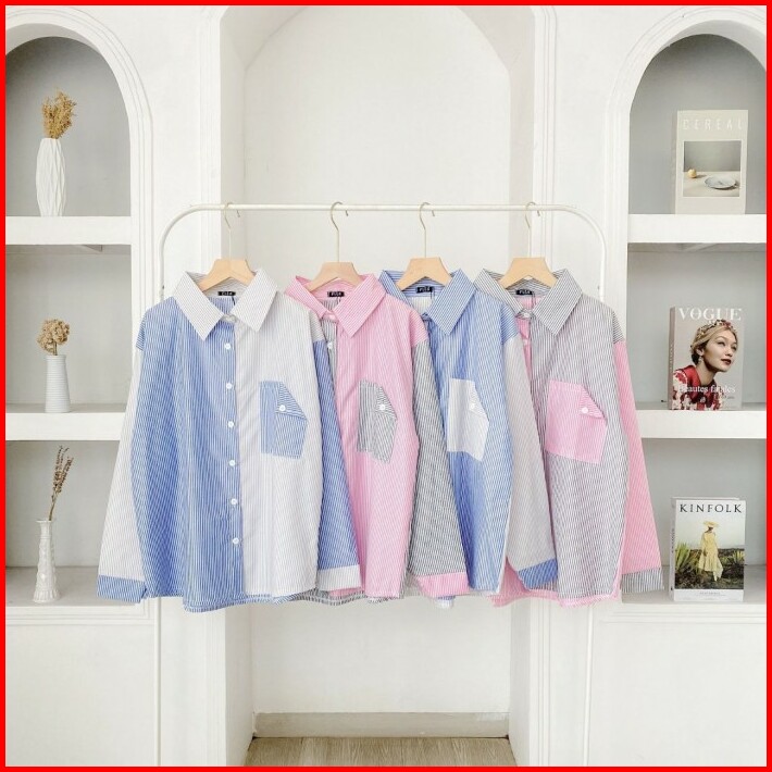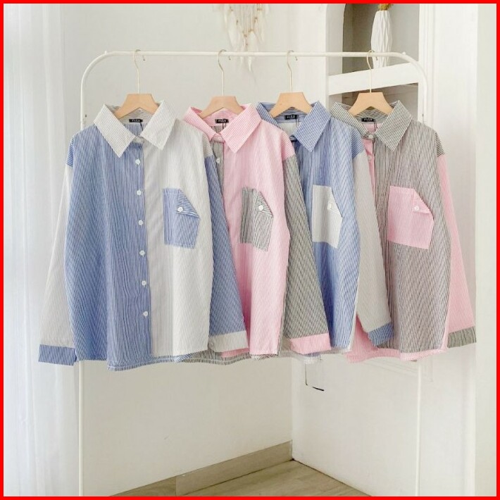 Leisha Shirt Kemeja Stripe Kombinasi Warna