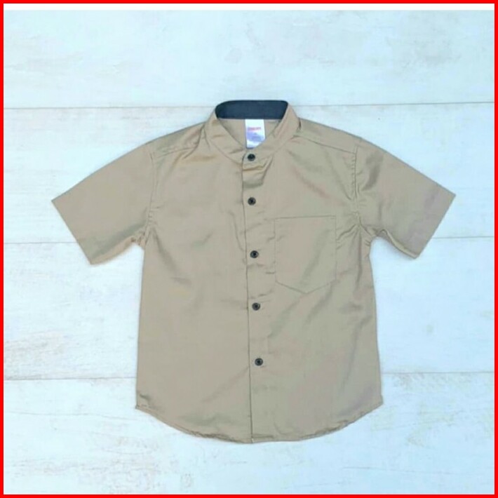 Baju Kemeja Anak Kerah Koko Lengan Pendek Krem Polos