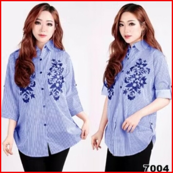 Blouse Wanita Salur Bordir Atasan Kemeja Wanita Kekinian Terbaru