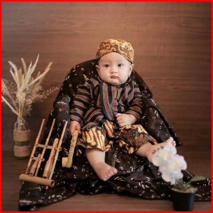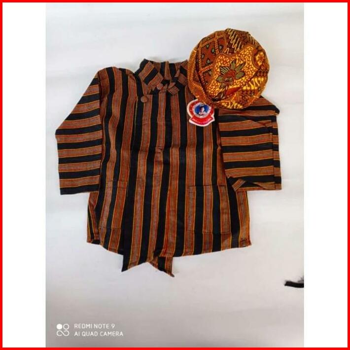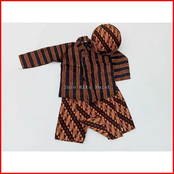 Lumbung Lurik Batik Setelan Beskap Surjan Anak Laki Laki Usia 0-12 Tahun Baju Adat Jawa Anak Surjan Lurik Katun Sarung C