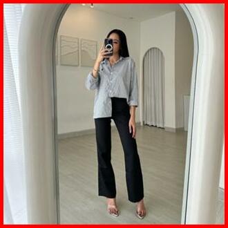 Sorinbyher Blair Stripes Shirt Kemeja Salur Garis Wanita Kemeja Ngantor Kantor Polo