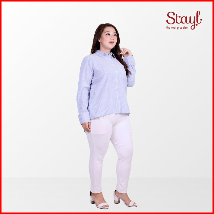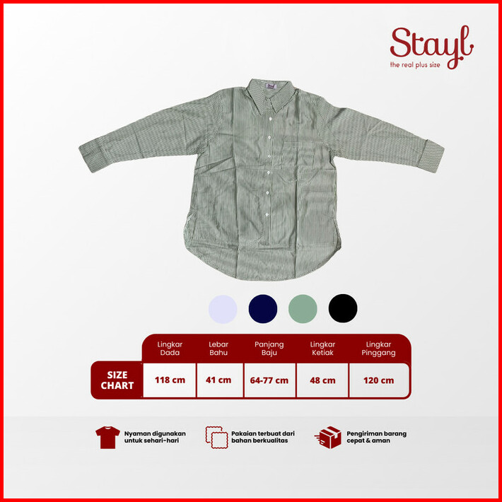 Kemeja Jumbo Wanita Ld 118 Fit To 2xl Salur Bigsize Superbig Yura