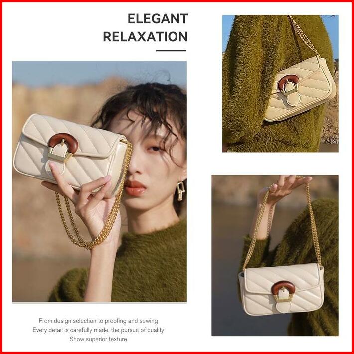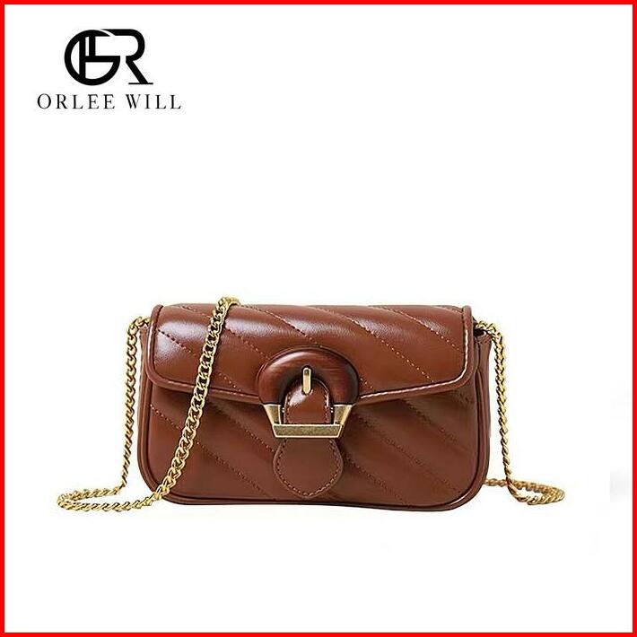 Orlee Will Tas Wanita Pasang Bordir Garis Rantai Tas Wanita Premium Sense Mini Tas Kecil Tas Selempang Bahu Tunggal Ol-1