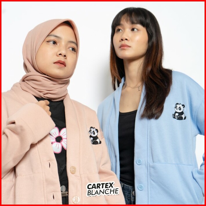 Cartexblanche Litle Panda Sweater Cardigan Kancing Bordir Outer Wanita