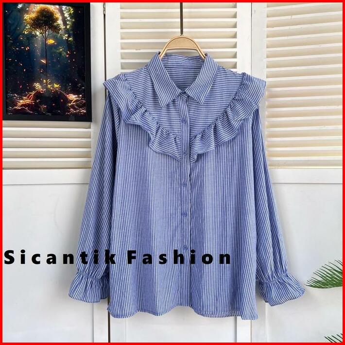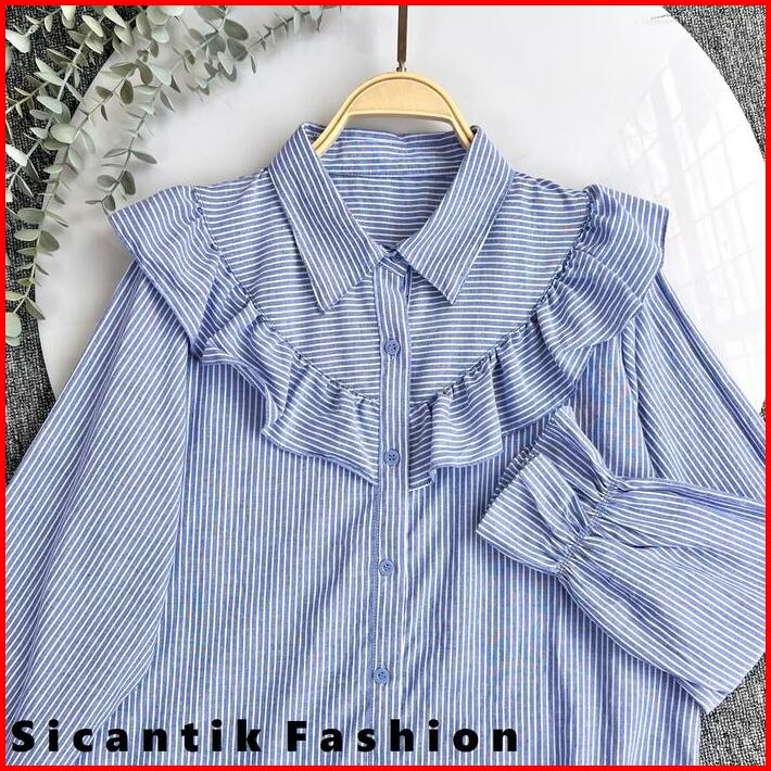Kemeja Salur Wanita Atasan Salur Cewek Korean