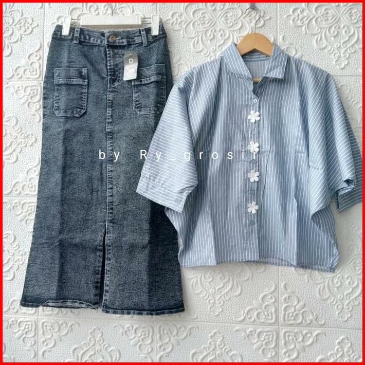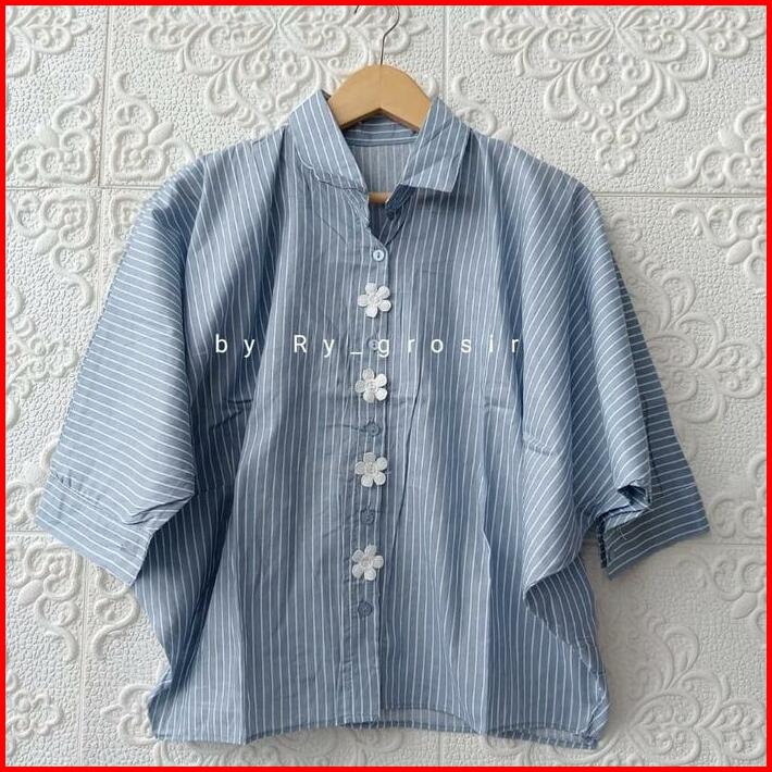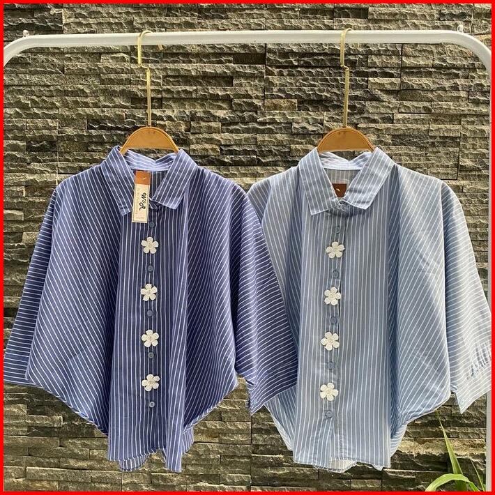 Kemeja Batwing Wanita Motif Salur Kekinian Dewasa