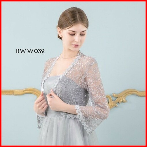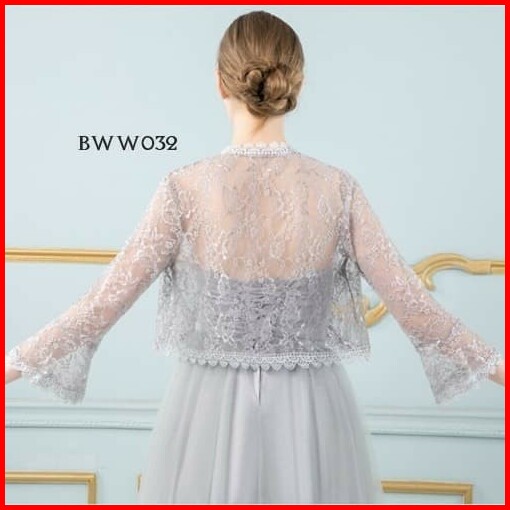 Outwear Cardigan Bolero Lengan Panjang Lace Pesta Wedding Grey Bww032