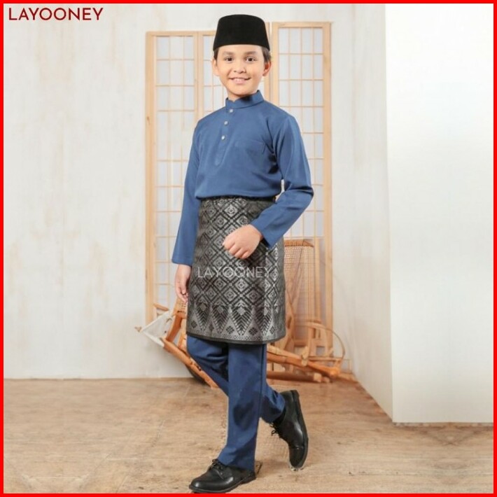 Jag Setelan Baju Kurung Melayu Anak Laki Laki Bahan Katun Toyobo Denim Satu Set Pakaian Teluk Belanga Cekak Musang Fashi