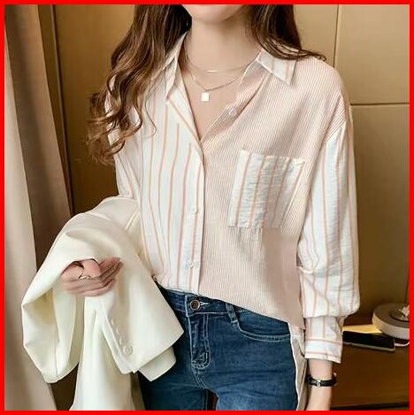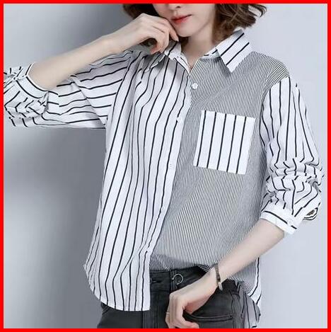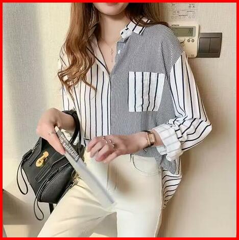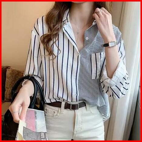 Twoty Shirt Fit Size M-xl Fashion Atasan Wanita Blouse Lengan Panjang Bahan Katun Salur Sopan Santai Kasual Outfit Kasua
