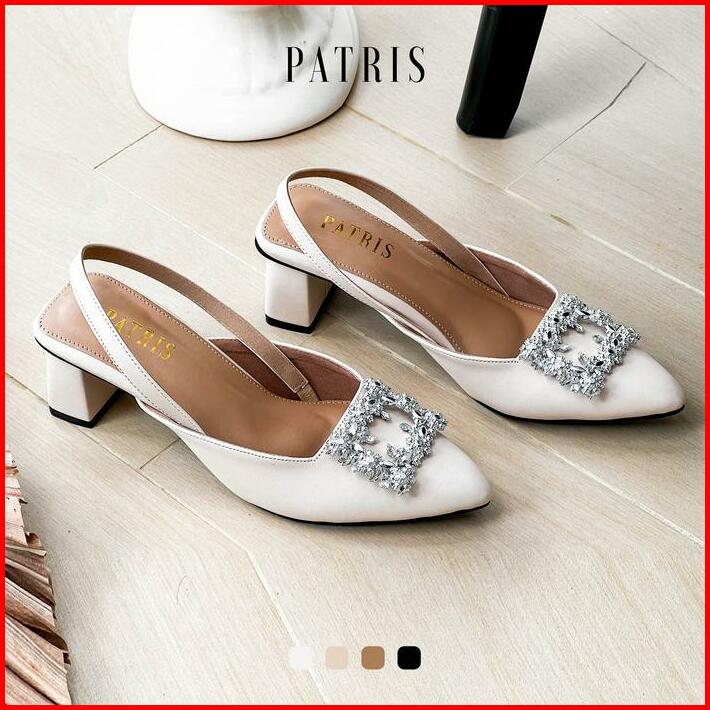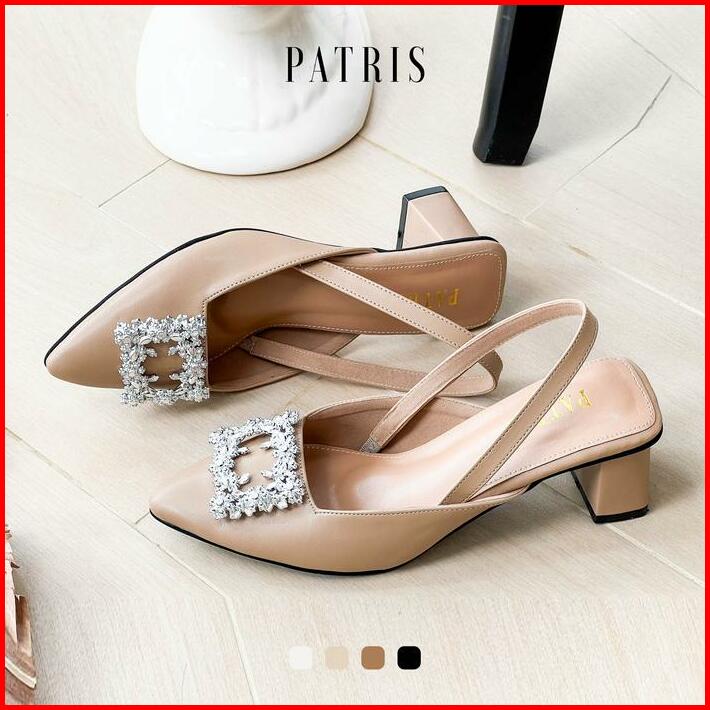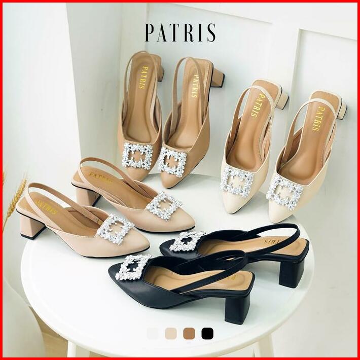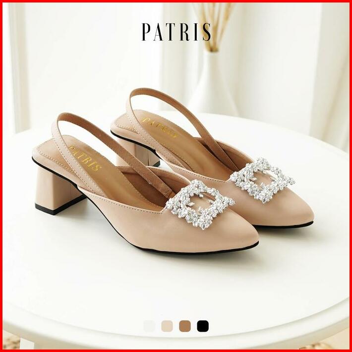 Patris Rosalind Mules Wanita Heels Hak 5 Cm Black Shoes Sendal Pesta