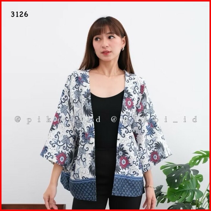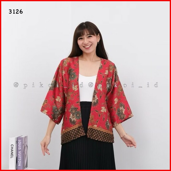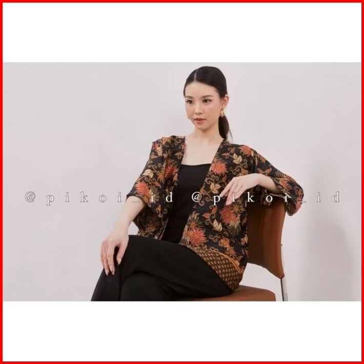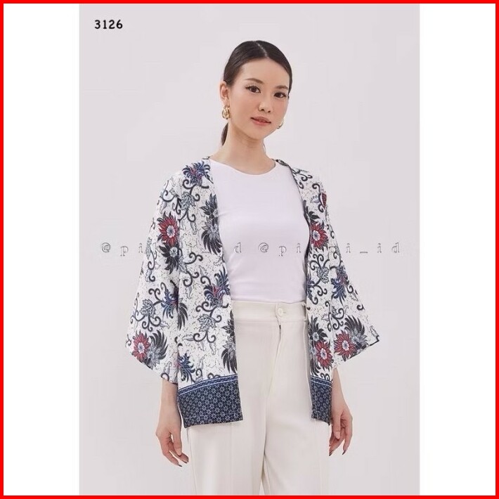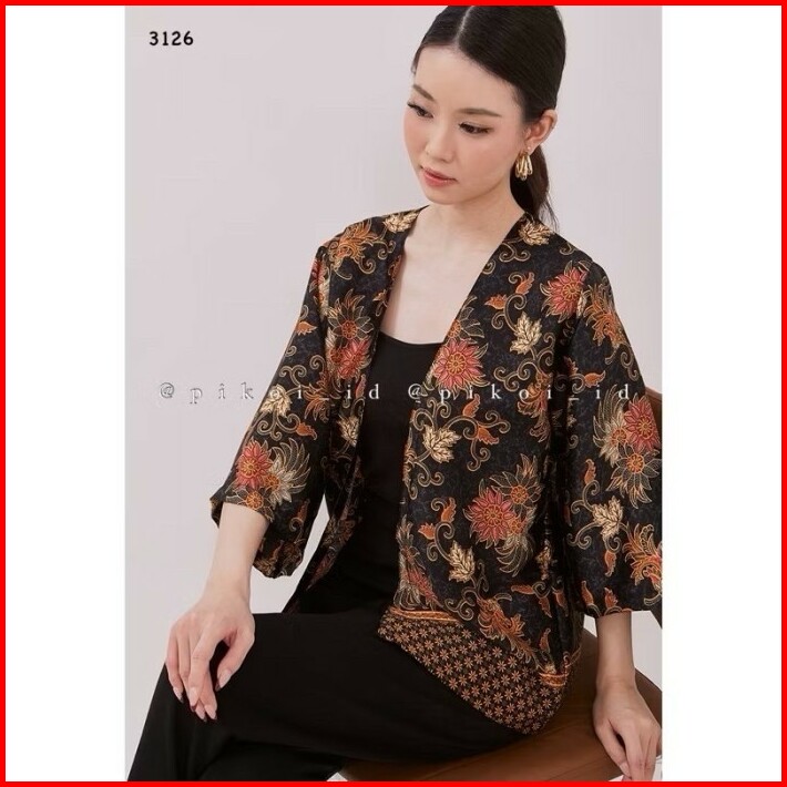 Cardigan Batik Wanita Modern Lengan Panjang Outer Batik Satin Kantor
