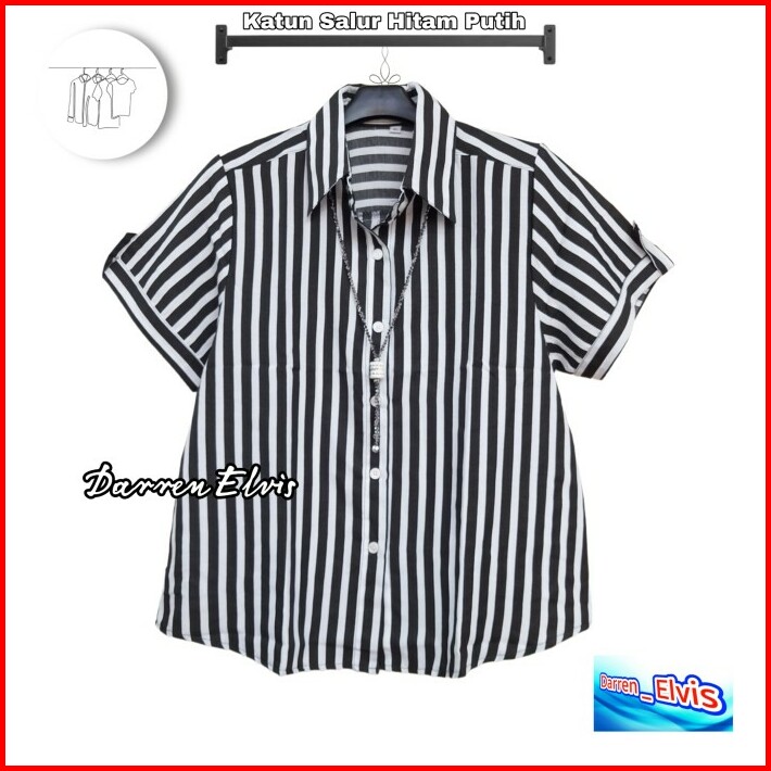 Kemeja Wanita Salur Hitam Putih Ganjar Pranowo