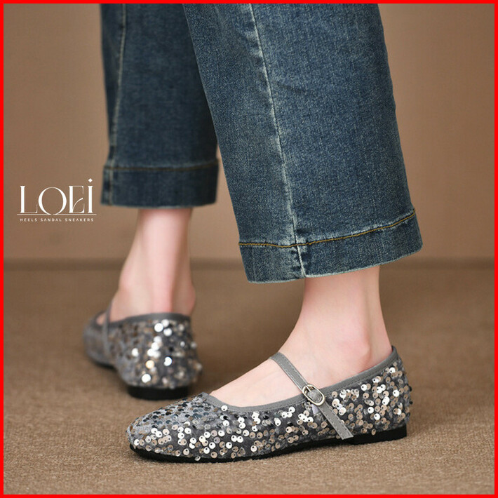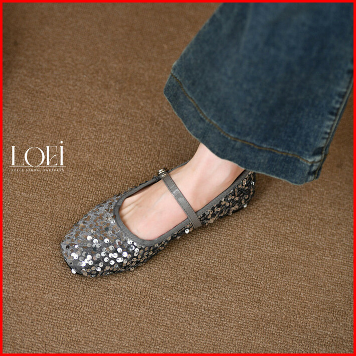Loei Yubi Tali Flatshoes Wanita Sepatu Sequin Elegant Kekinian 5051