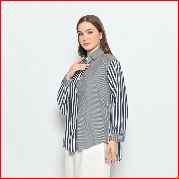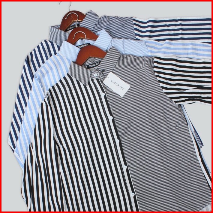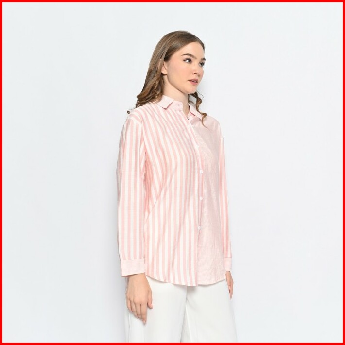 Queentin Kemeja Casual Wanita 5017 Katun Silk Salur Lengan Panjang