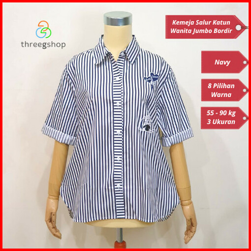Kemeja Jumbo Wanita Salur Katun Bordir Tangan 7 8 L Xl Xxxl 735