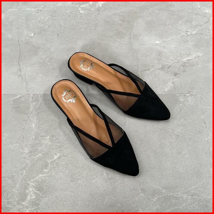Sepatu Mule Wanita Faduzzi Hak 3cm Model Sunmi Sendal Perempuan Shoes Slip Resistant S Sandal Mules Tertutup Depan Fleks