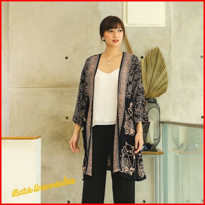 Batik Outer Long Cardigan. Batik Motif Lucu. Big Jumbo