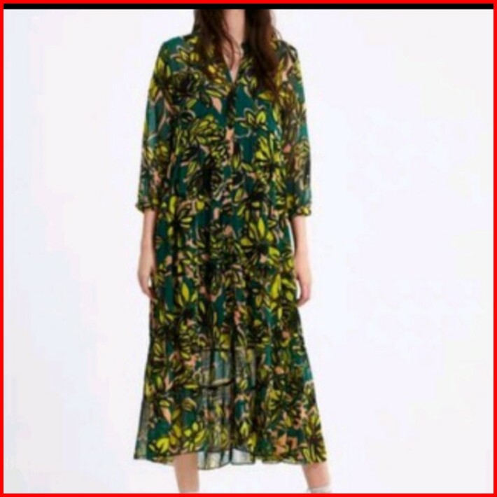 As6268 Long Cardigan Sifon Bunga Krah Kancing Impor