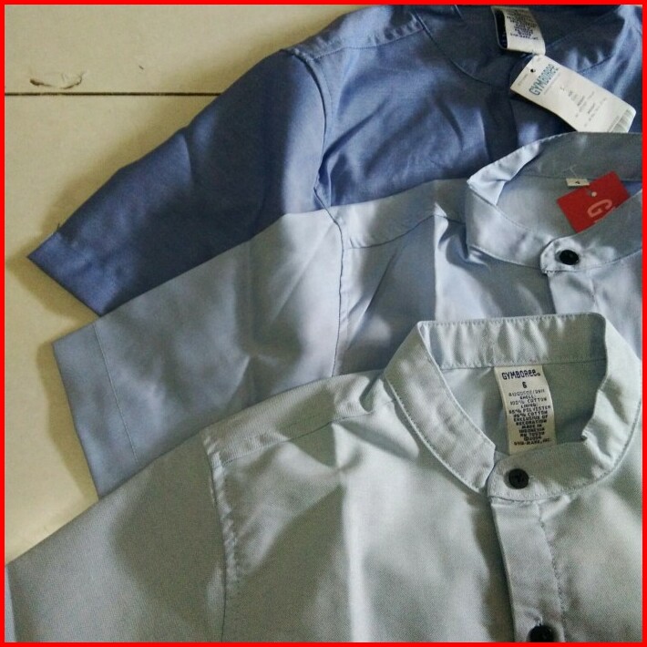 Baju Kemeja Kerah Koko Anak Cowok Lengan Pendek Biru Muda Tua Polos