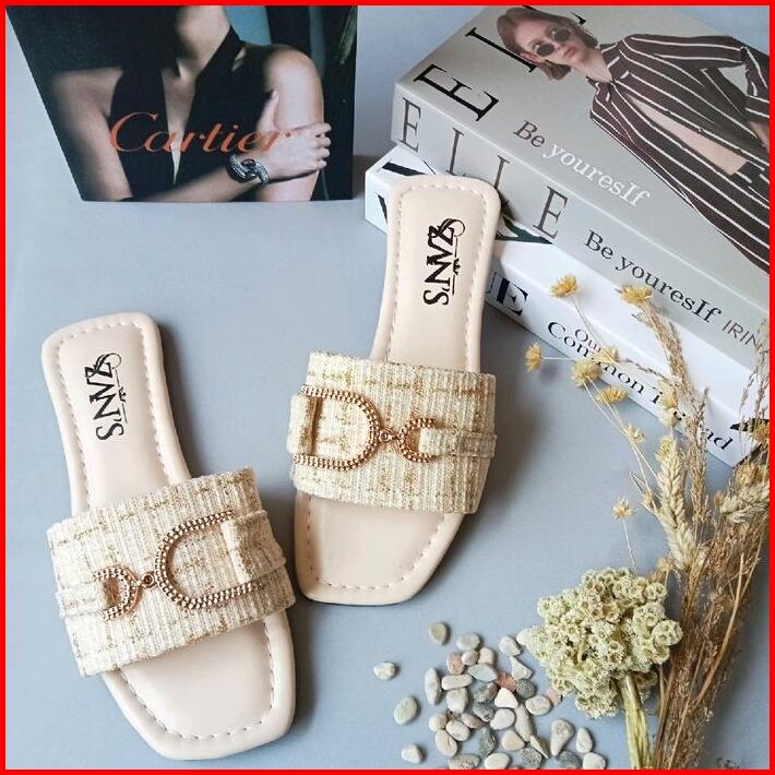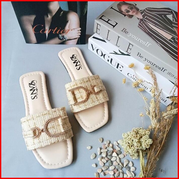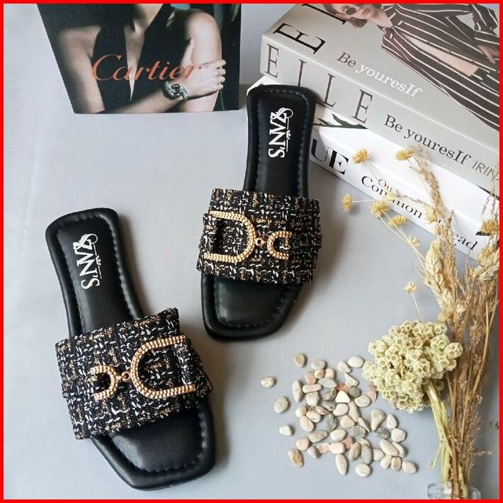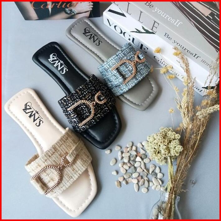 Sandal Wanita Zan S Sandal Teplek Style Kekinian Bahan Tweed Super Lembut