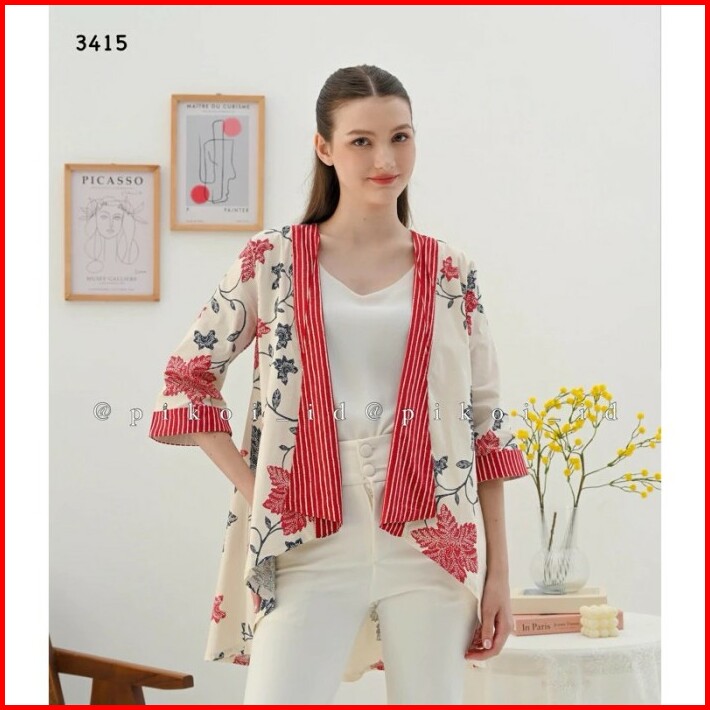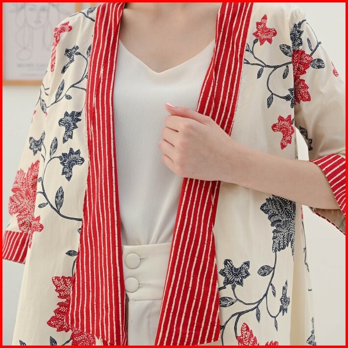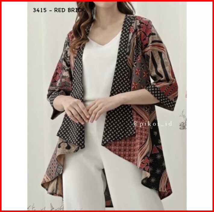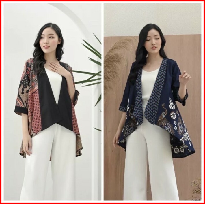 Cardigan Panjang Batik Wanita Modern Long Outer Batik Seragam Kantor
