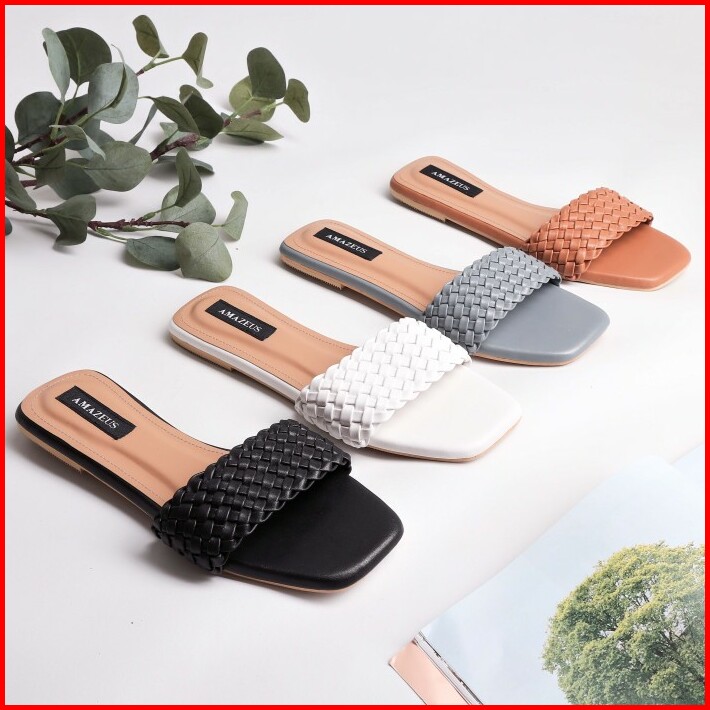 Amazeus Ginger Sandal Teplek Wanita Sendal Selop Kepang Flat
