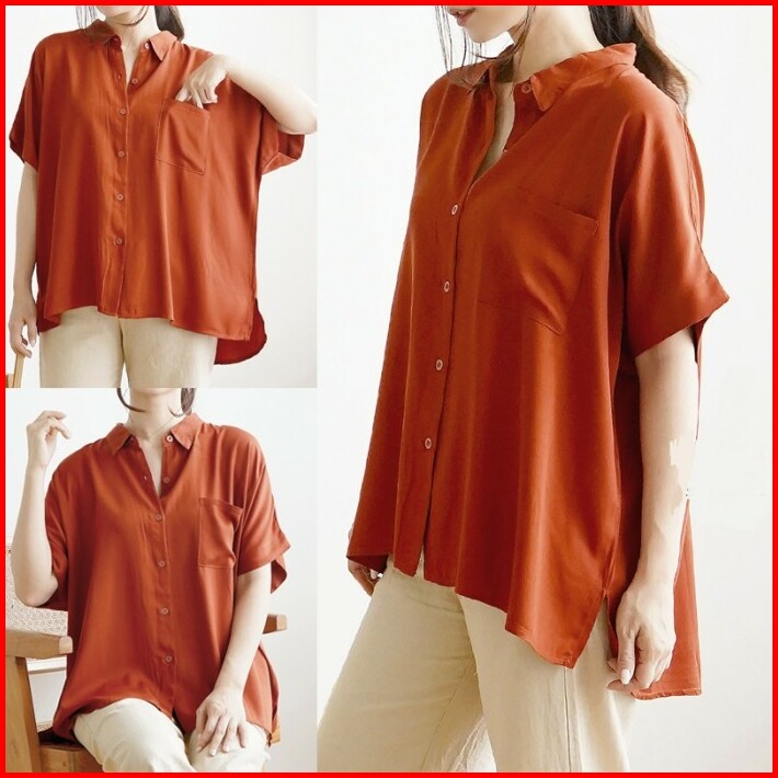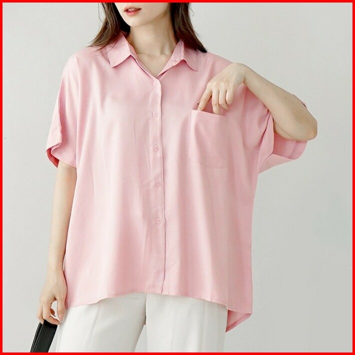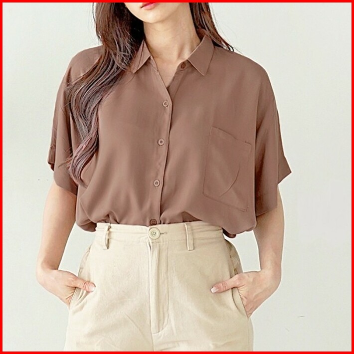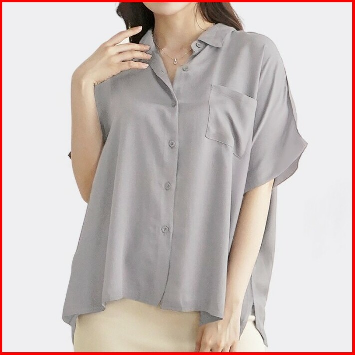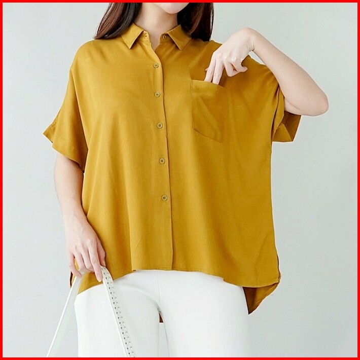 Kemeja Rayon Twill Oversize Wanita Polos Pocket Casual Basic Shirt