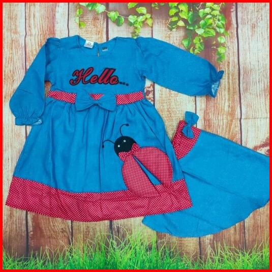 Two Mix Baju Gamis Anak Perempuan Denim Jeans Dj332