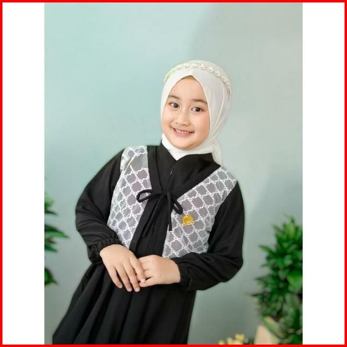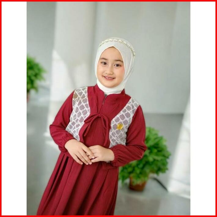 Gamis Dress Anak Perempuan Muslim Ziza Mix Malika Bahan Crinkle Airflow Tile Brukat Desain Kualitas Terbaru Usia 1