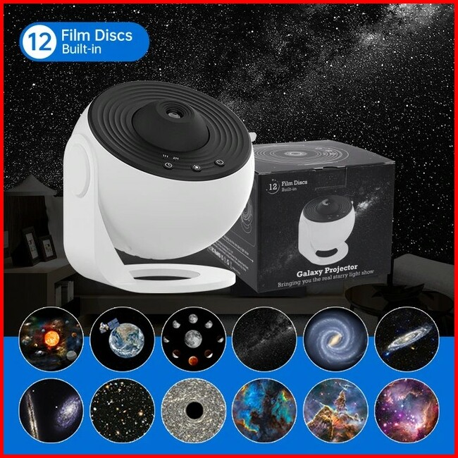 Lampu Tidur Proyektor 12 Film Galaxy Projector Starry Sky Projector 360 Rotate Planetarium Lamp For Kids Bedroom