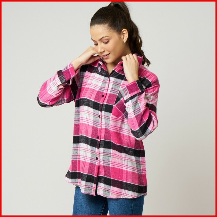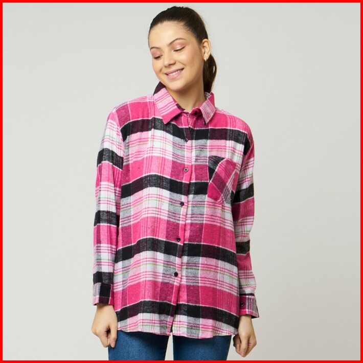 Monellina 601055 Kemeja Flanel Oversize Wanita Lengan Panjang