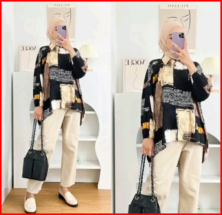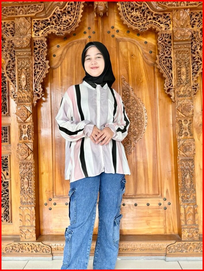 Kemeja Wanita Lengan Panjang Jumbo Bambu Oversize Kekinian
