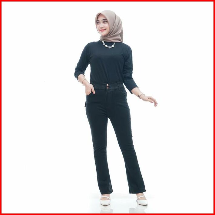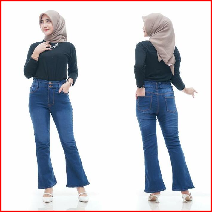 Cutbray Highwaist Karet Pinggang Jeans Tebal 13os Big Size Jumbo 27-42 Celana Panjang