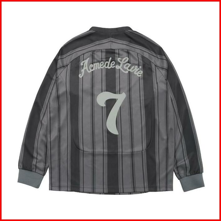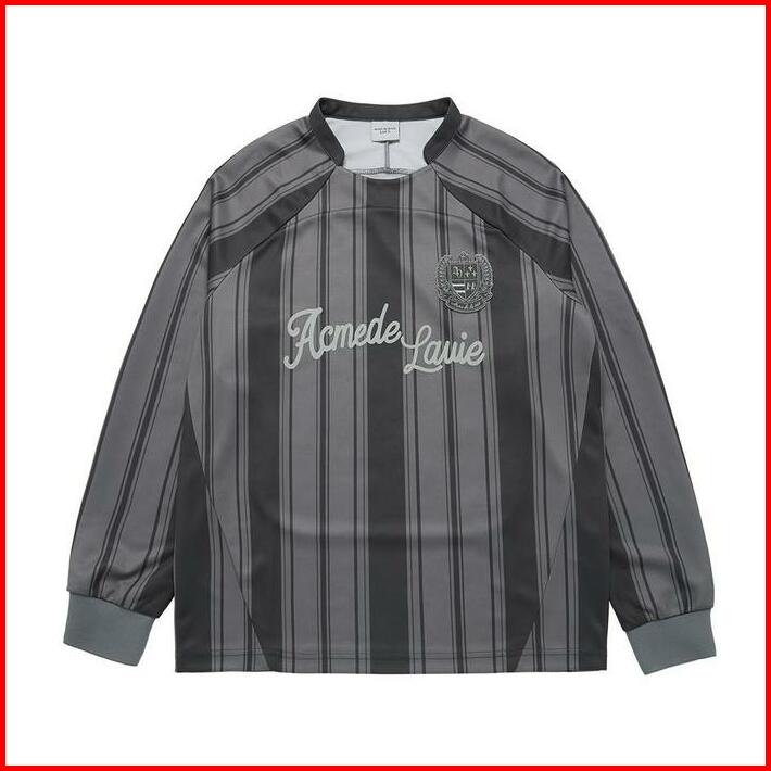 Adlv Stripe Football Jersey Long Sleeve T-shirt Black