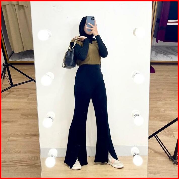 Artwo Celana Wanita Cutbray Slit Rajut Halus Premium