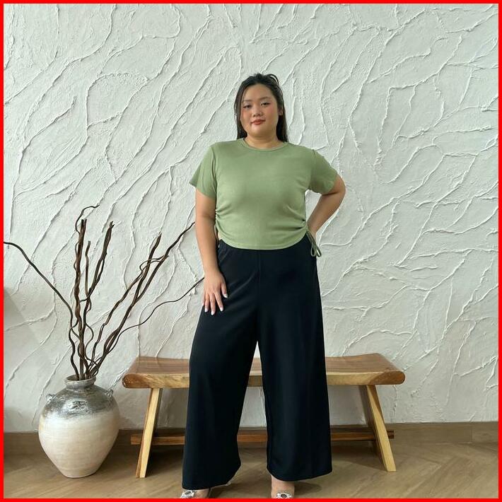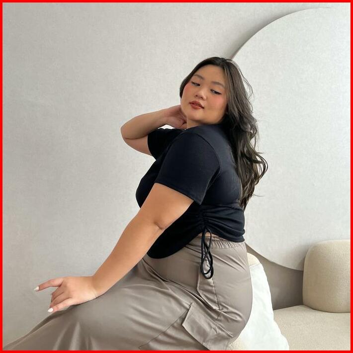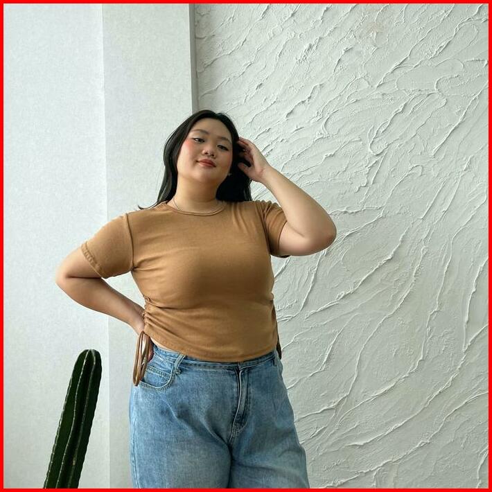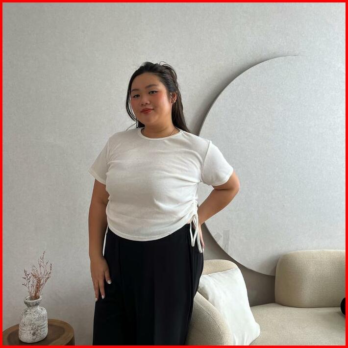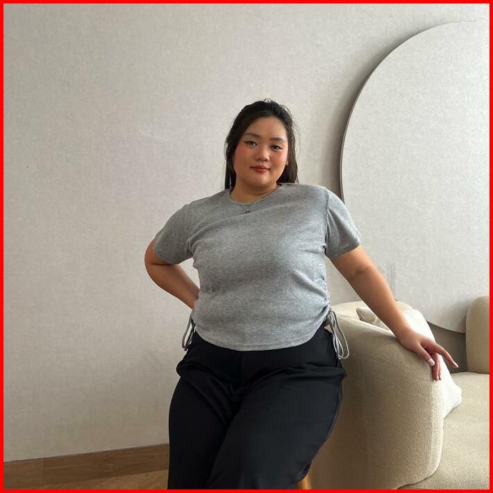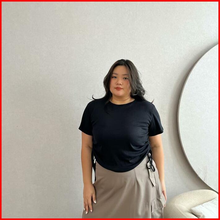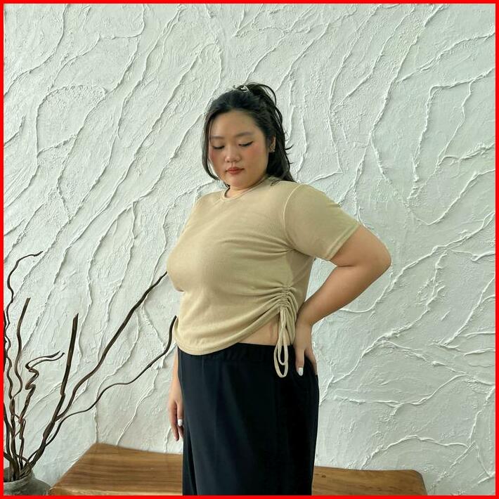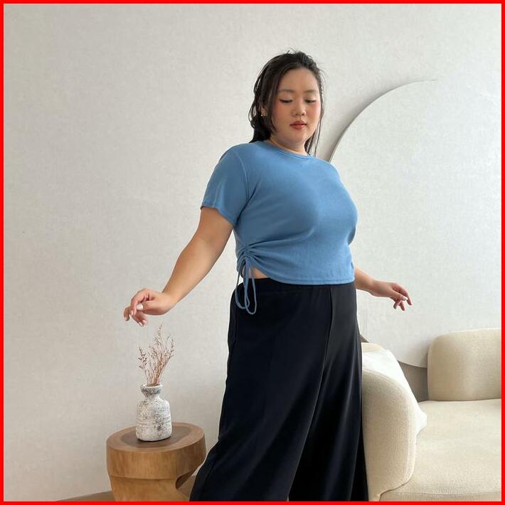 Lolabae Jena Big Size Baju Atasan Wanita Crop Top Basic Kaos Rib Polos Knit Top Tali Serut Atasan Casual Wanita Atasan C
