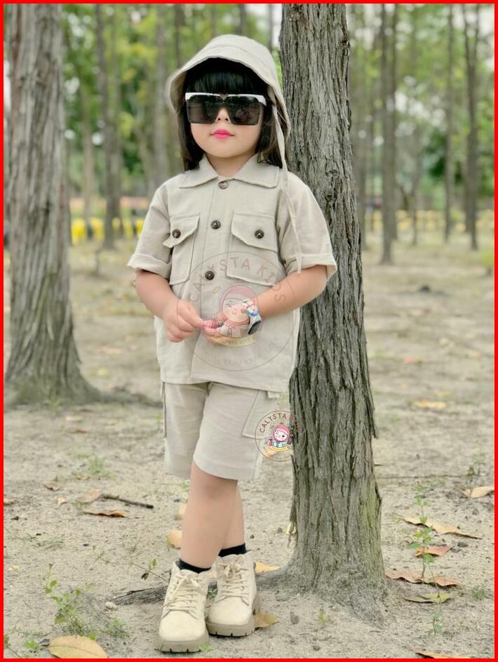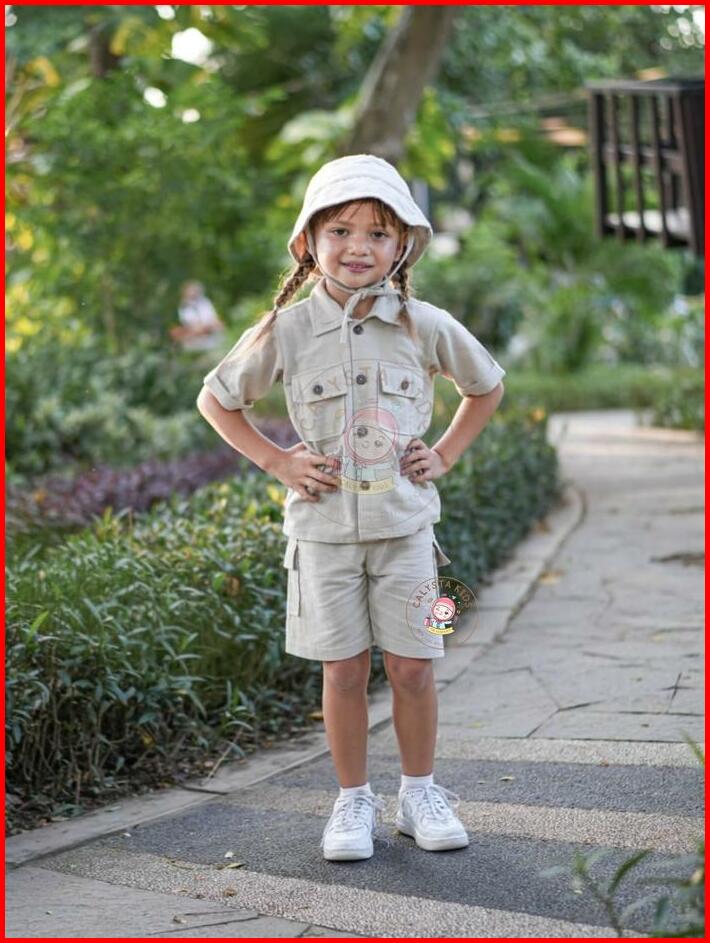 Setelan Anak Safari 1-6th Unisex Setelan Anak Laki Laki Setelan Anak Perempuan Setelan Katun Linen Baju Bayi
