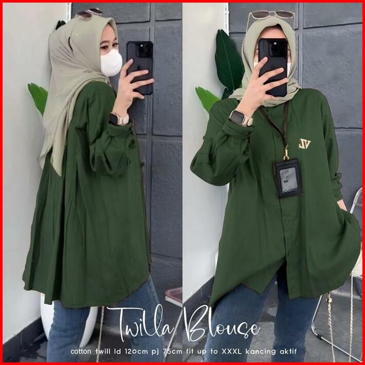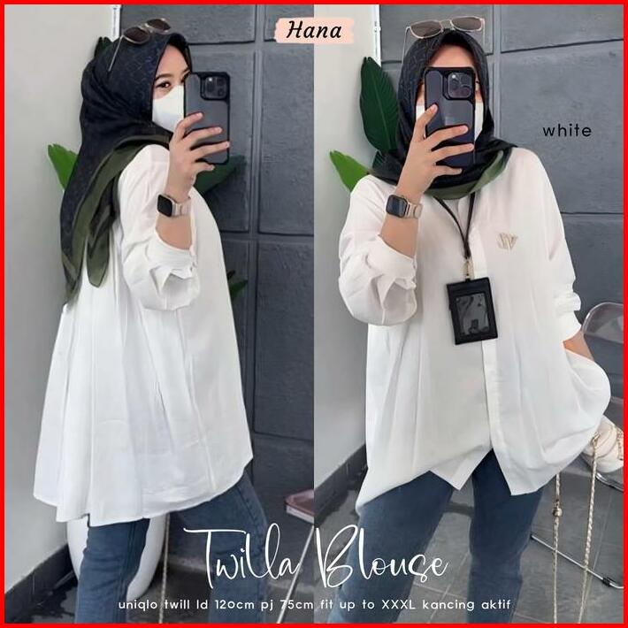 Kemeja Blouse Wanita Kekinian Oversize Jumbo Polos Korean Style Baju Atasan Rayon Twill Casual Panjang Hitam
