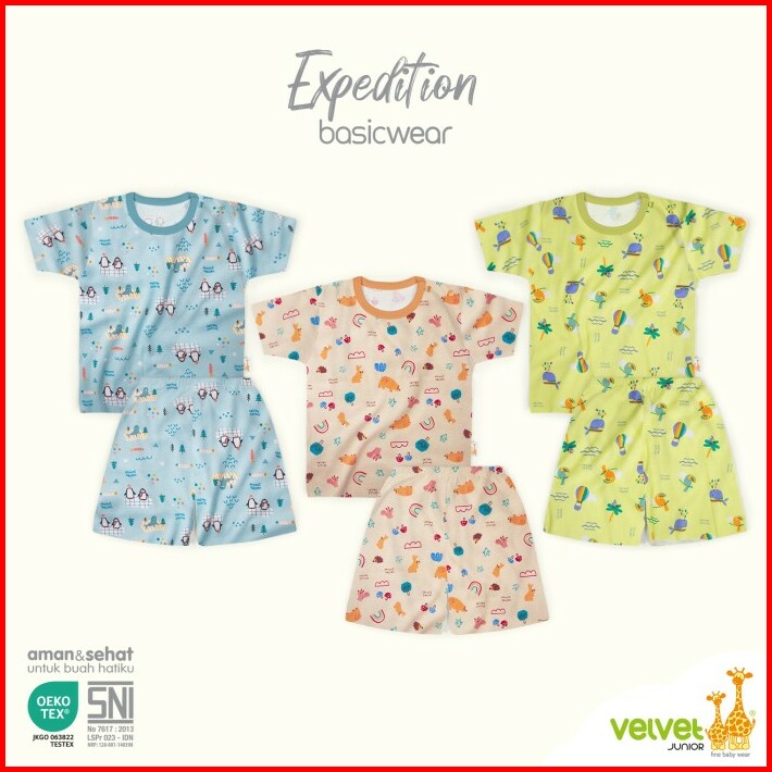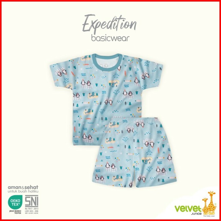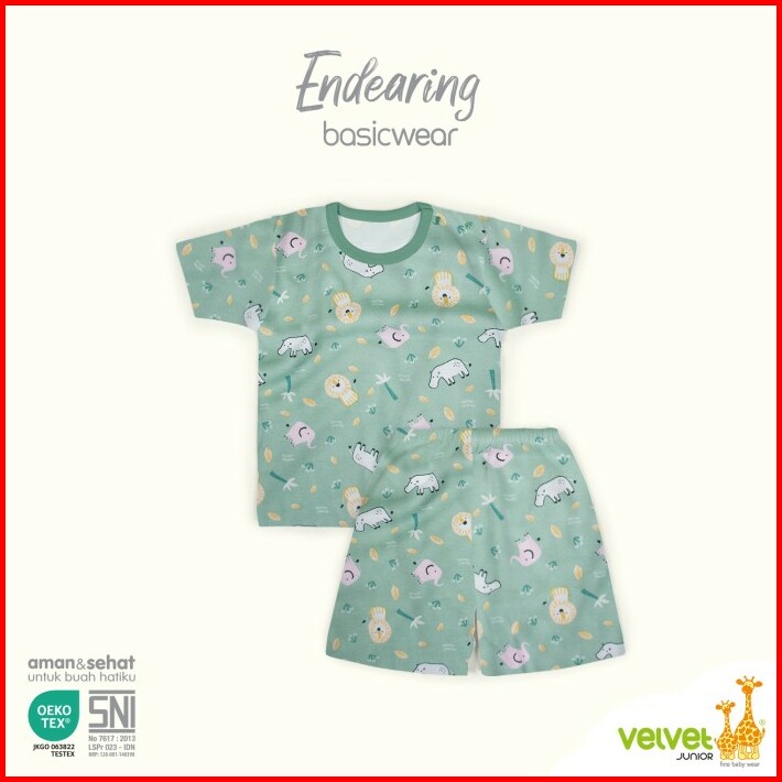 Velvet Junior Setelan Baju Anak Kancing Pundak Pendek Celana Pendek