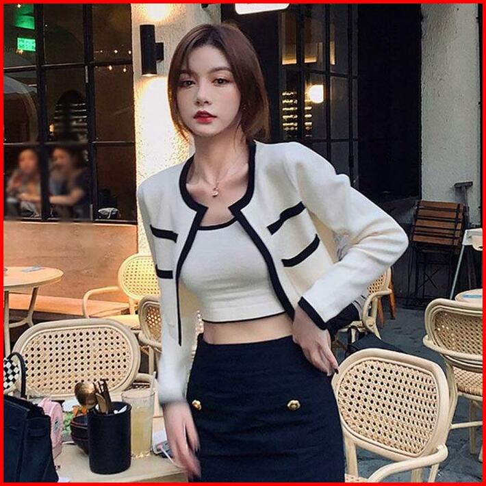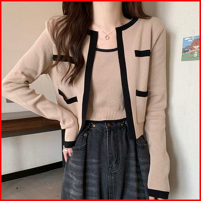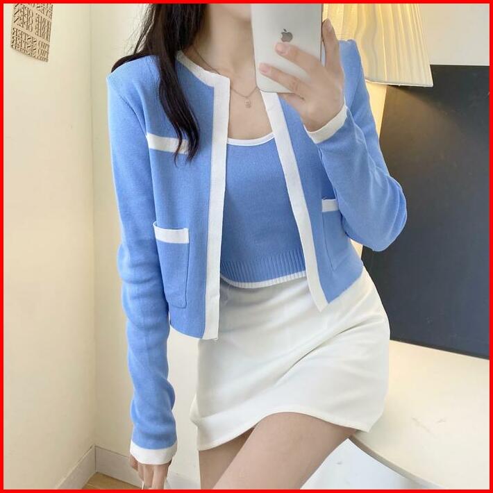 Tteuda Atasan Tanktop Cardigan Set Lengan Panjang Kekinian Rajut Premium Baju Atasan Wanita Tanktop Cardigan Lengan Panj