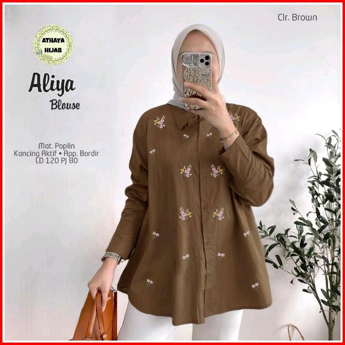 Aliya Kemeja By Athaya. Kemeja Wanita Shirt Katun Poplin Halus Adem Motif Bunga Bordir Jumbo Ld 120 Oversize Outfit Wani