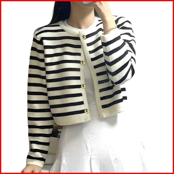 Moura Setrip Cardigan Kancing Sweater Rajut Wanita