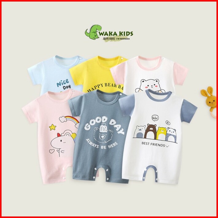 Wakakids Jumpsuit Bayi Jumper Pendek Anak Kancing Romper Baju Terusan Motif Lucu Venrz